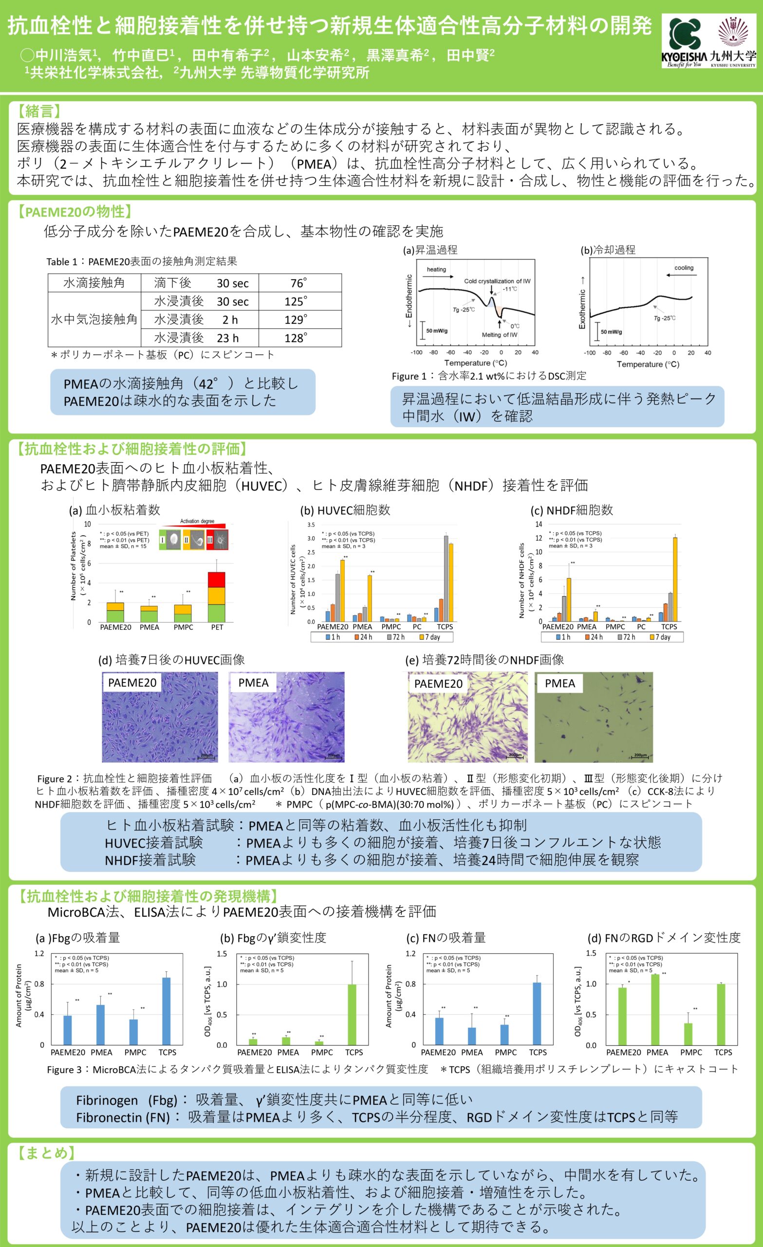 11月9日から開催された第47回日本バイオマテリアル学会で、新規事業・基幹技術開発推進室から、抗血栓性と細胞接着性に優れた新規生体適合性を有する高分子材料の研究成果について、ポスター発表しました。