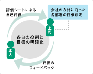 当社は、社員が自分の目標をどれだけ達成できたかを上司とともに確認する公平な人事制度を採用し、個人の能力が十分に発揮されるような環境・職場づくりをしています。